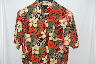 Roberto Villini Men's Designer Casual Shirt, 3XL, Black Floral & Palm Design, Short Sleeve, 100% Silk, new without tags.