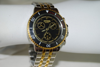 Men's Rosra Designer Two-Tone Quartz Bracelet Watch with Black Face.