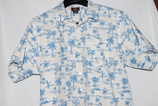 Route 66 Men's Designer Casual Shirt, 3XL, White with Blue Palm Tree Design, Short Sleeve, 100% Cotton, new without tags.