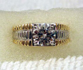 Men's Designer 18k Gold Overlay Ring with a 2 Karat Zirconium center stone. Size 13.