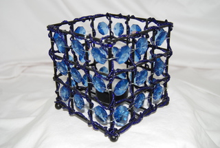Designer Black Metal Candle Holder with Blue Beads in a Square Design & Votive Candle.