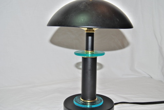 Black Metal Touch Lamp with Glass & Brass Accents, On & Off with a Touch. 110v. Open Box, Tested. 12H. x 8"W.