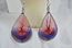 Ladies Designer Red, Blue, Purple Thread on Silver Braided Frame Pierced Earrings. 1.5" x 2 3/4"