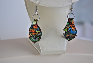 Ladies Murano Hand-Blown Glass Pierced Earrings in Black, Orange, Blue & Green Multicolored Design.