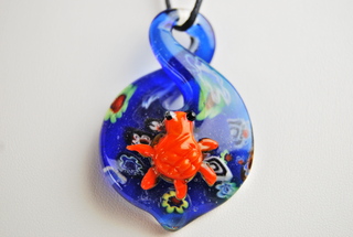 Ladies Murano Hand-Blown Glass Orange Turtle Design Design Pendant Necklace on 18" Rope Cord.
