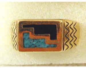 Men's Designer 18k Gold Overlay Ring with a Onyx & Turquoise Design. Size 12.