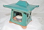 Jade Green Oriental Garden Style Candle Holder of Glazed Pottery with Votive Candle. 6" Square Design.