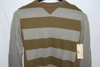 Route 66 Men's "Long Sleeve" Polo Shirt, Medium, Kakai with Gray Stripe Design, 100% Cotton, new without tags. SRP:$ 35.00