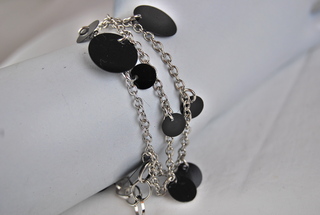 Ladies Designer Silver with Black Disk Triple Chain Design Bracelet.