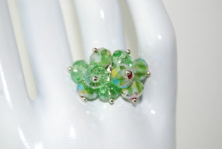 Ladies Designer Silver with Green Crystal Bangle Ring. Adjustable.