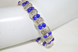 Ladies Designer Double Bead Lapis Tibet Design Bracelet with Adjustable Lobster Clasp.