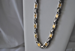 Ladies 22" Designer Silver Link & Gold Cross Design Necklace.