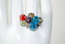 Ladies Designer Silver Multicolored Crystal Bangle Ring. Adjustable.