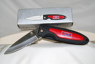 Frost Cutlery - Southern Pride Pocket Knife, # 21012B SL, Stainless Steel, Best Quality, Finger Tip Lock Blade, Sawtooth, Red and Grey Handle with Stars and Bars, 6.5" Long Open with Back Clip.