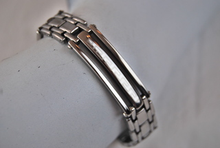 Designer 8" Silver Stainless Hinge & Bar Design Bracelet.