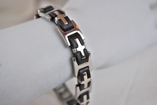 Designer 8 1/2" Silver Stainless in Black and Silver Cross Link Design Bracelet.