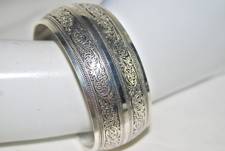 Ladies Silver Stainless Oriental Dragon Design Adjustable Cuff Bracelet.