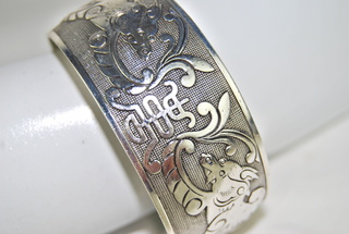 Ladies Silver Stainless, Reverse Flair, Scrolling Knife & Floral Design Adjustable Cuff Bracelet.