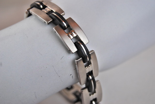 Men's Designer 8" Polished Silver Stainless and Black with Silver Accents Bracelet.