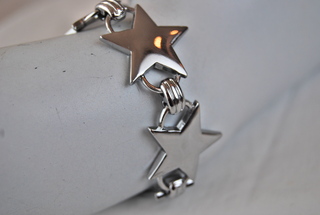 Ladies Designer 8" Ladies Polished Silver Stainless Star Design Bracelet.
