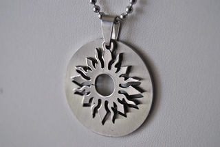 Designer 20" Necklace Silver Polished Stainless Etched Flaming Sun Medallion with Chain.