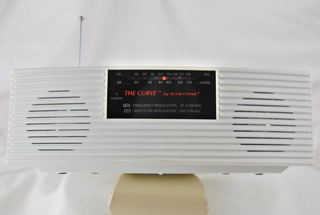 Suntone Curve Radio, AM/FM Portable Radio. Batteries Not Included, Retractable Antena. 3" H x 8.5" L x 3" D. Open Box - Tested. Batteries not included.