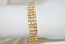 Ladies Designer Swarovski 18K Plated Gold Triple Stone Design Stretch Bracelet.