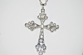 Ladies Designer 22 1/2" Swarovski Crystal Cross Necklace with Silver Chain.