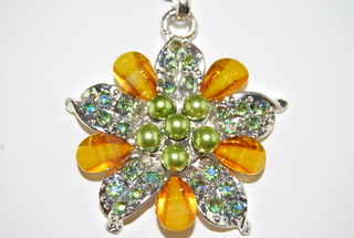 Ladies Designer 20" Swarovski Floral Design Necklace with Green Rope.