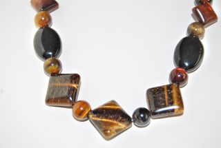 Ladies Designer Polished "Tiger Eye and Agate" Gemstone, Adjustable 18.5" to 20.3".