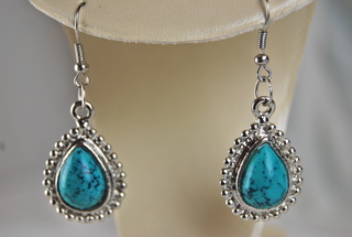 Ladies Designer Turquoise & Silver Tear Drop Dangle Pierced Earrings.