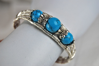 Ladies Designer 8" Turquoise & Silver Tibet Design Bracelet.
