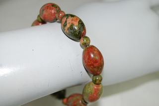 Ladies Designer Natural "Unakite" Gemstone Oval and Round Bead Design Bracelet.