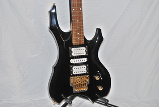 New Custom Warlock Style 6-String, Right-Hand Electric Guitar, Beveled Black Finish with Clear Laquer, 5 Humbucker Pick-Ups, Maple Neck with 22 Fret Rosewood Fingerboard, Volume X1 & X2, 5 Scale Tone Changer, Chrome Adjustable Bridge and Whammy Bar,